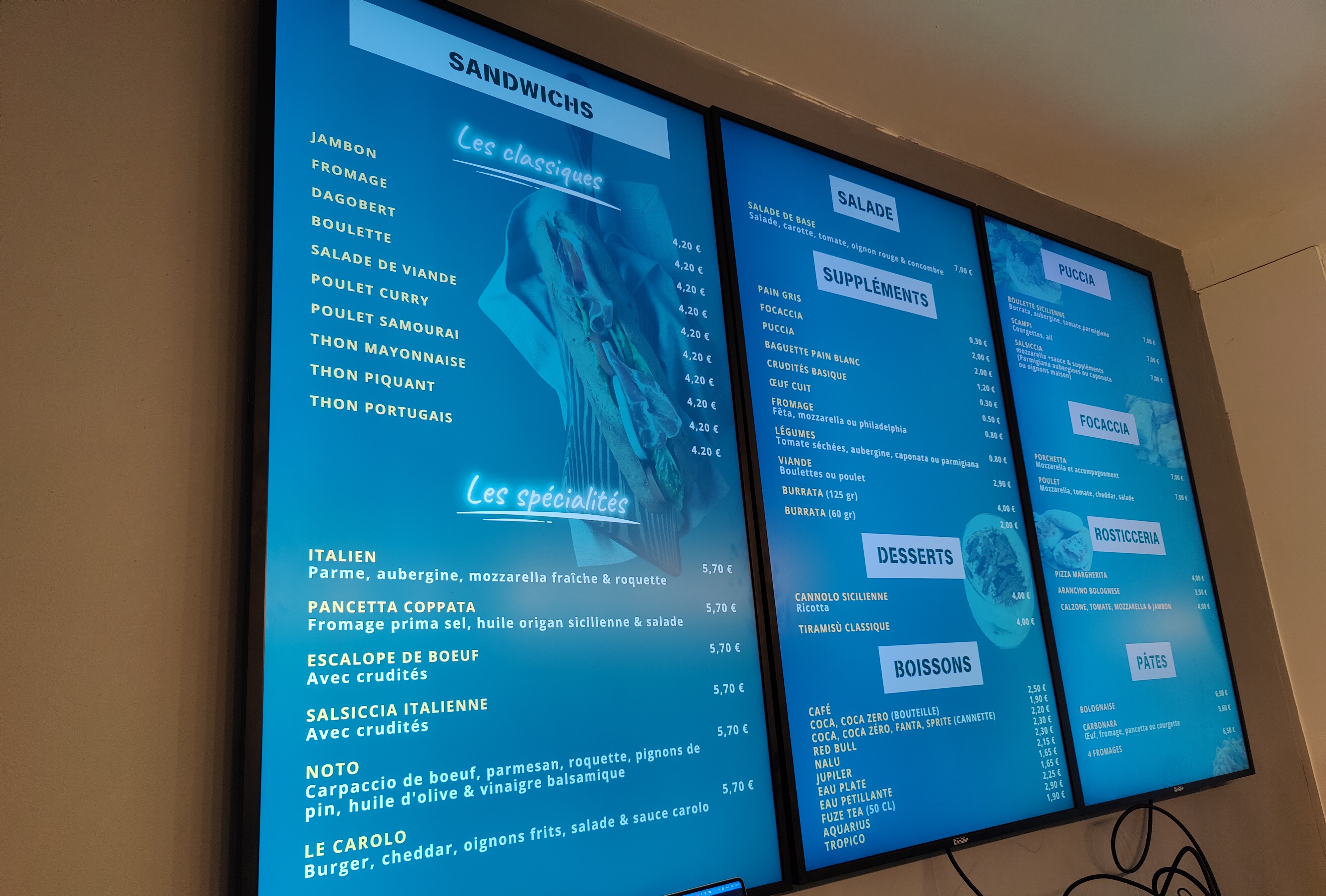 I own a restaurant and I would like to display a different full-screen image on each of my three screens, so that people can see the 3 menus of my restaurant.