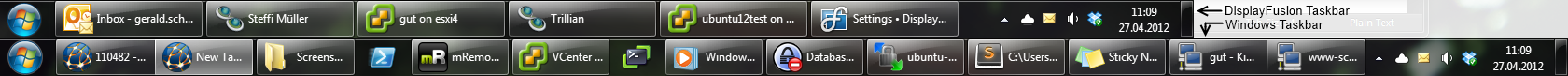 In the Windows Taskbar the icons are "fused" together, with both labels shown, as long as there is enough space. When the taskbar is full they are stacked like the DisplayFusion taskbar (and the Windows Taskbar in the "Always combine, hide labels" setting).