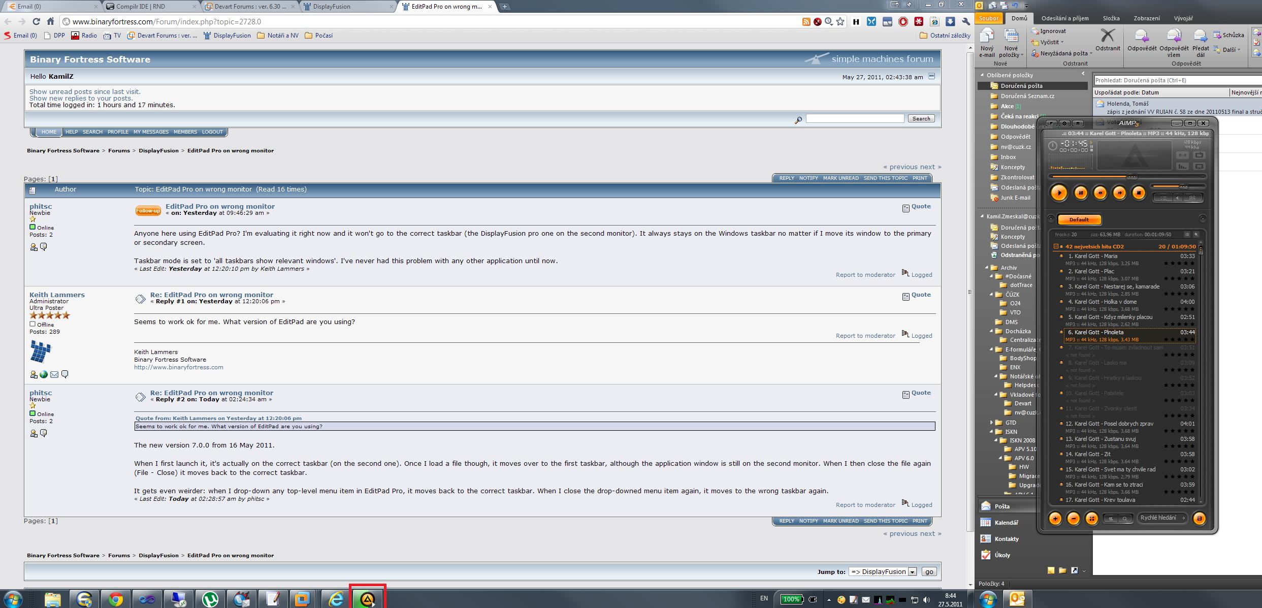 I have a trouble with AIMP3 - it's always shown on left (primary) taskbar.