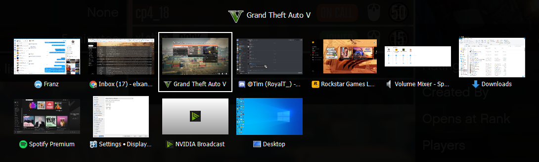 I've been using DisplayFusion for years and love it, however this recent problem is quite an annoyance. I use DisplayFusions Alt Tab handler with the setting "Show on all monitors, show all windows". What happens is when GTA V is the active application (and a few other games) and I start Alt Tab, I'm only shown the popup on the main monitor and only applications on that monitor, apart from the Xbox app which shows us regardless of the monitor it's on...