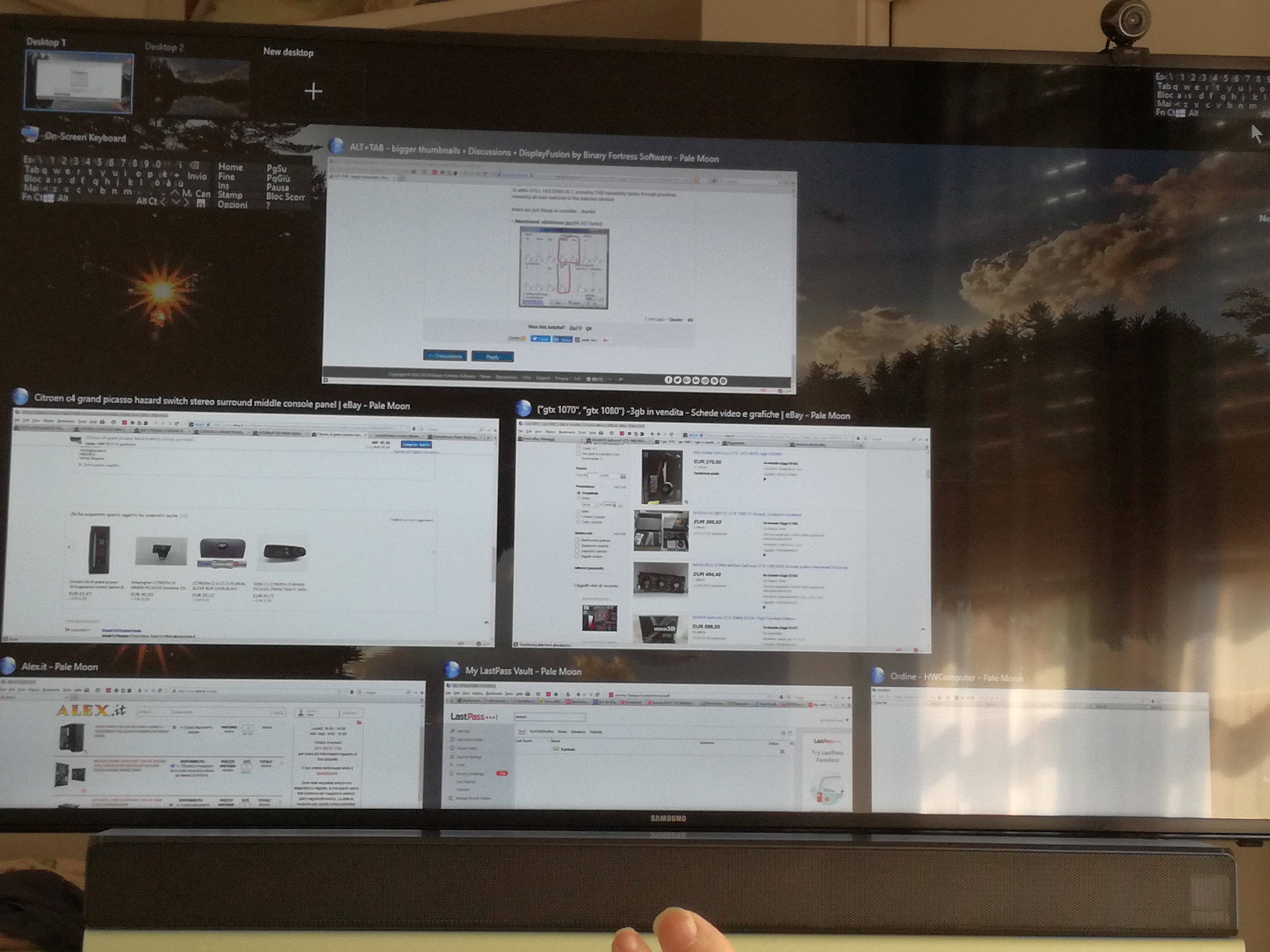 2) i have 3 monitors [ FULL HD ] / [ FULL HD ] / [ laptop ] and i have the laptop as primary (due to various reasons also related to DisplayFusion handling of Multi-Monitor Taskbar) so the WIN+TAB shows on the small laptop.... not ideal