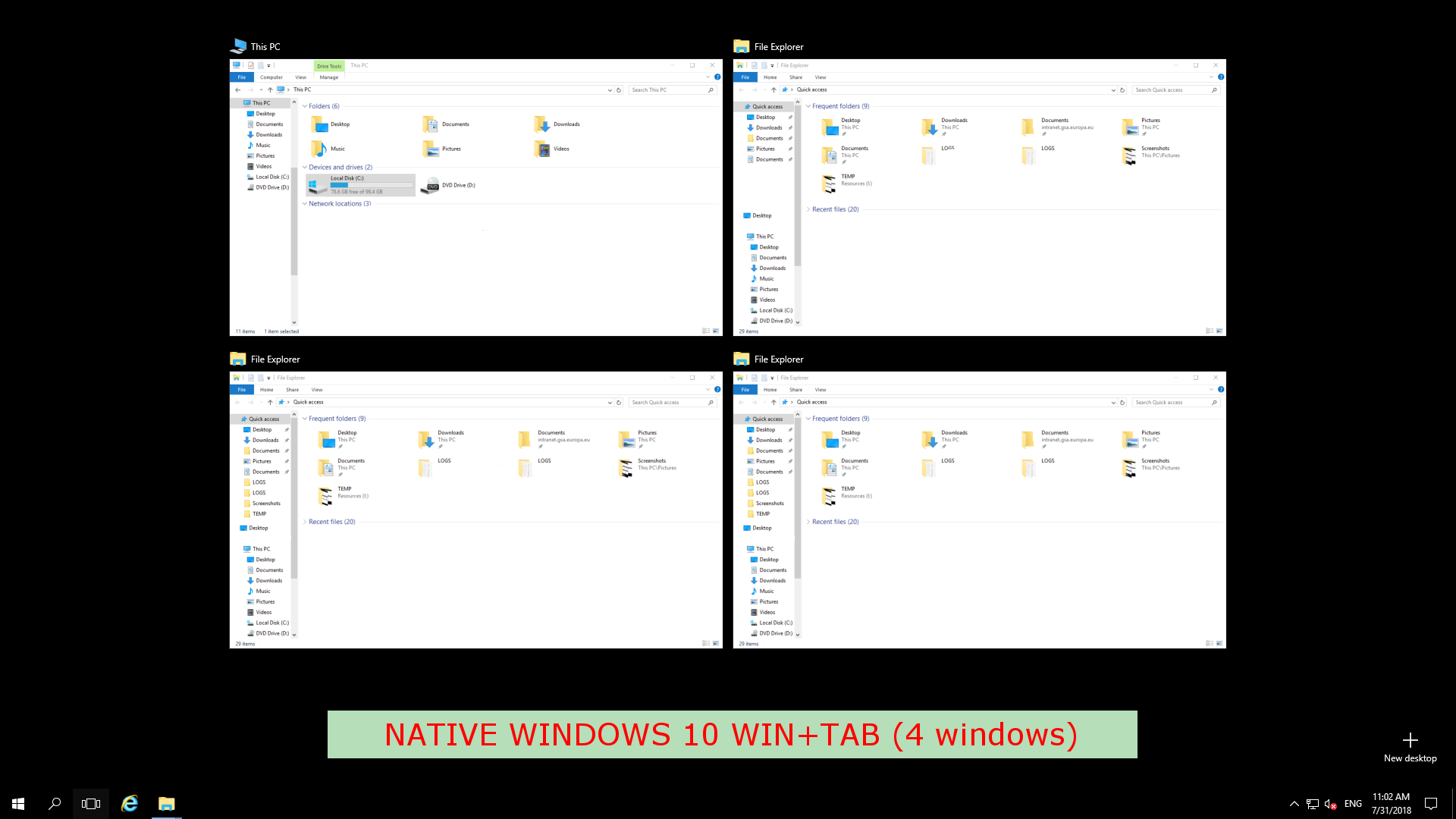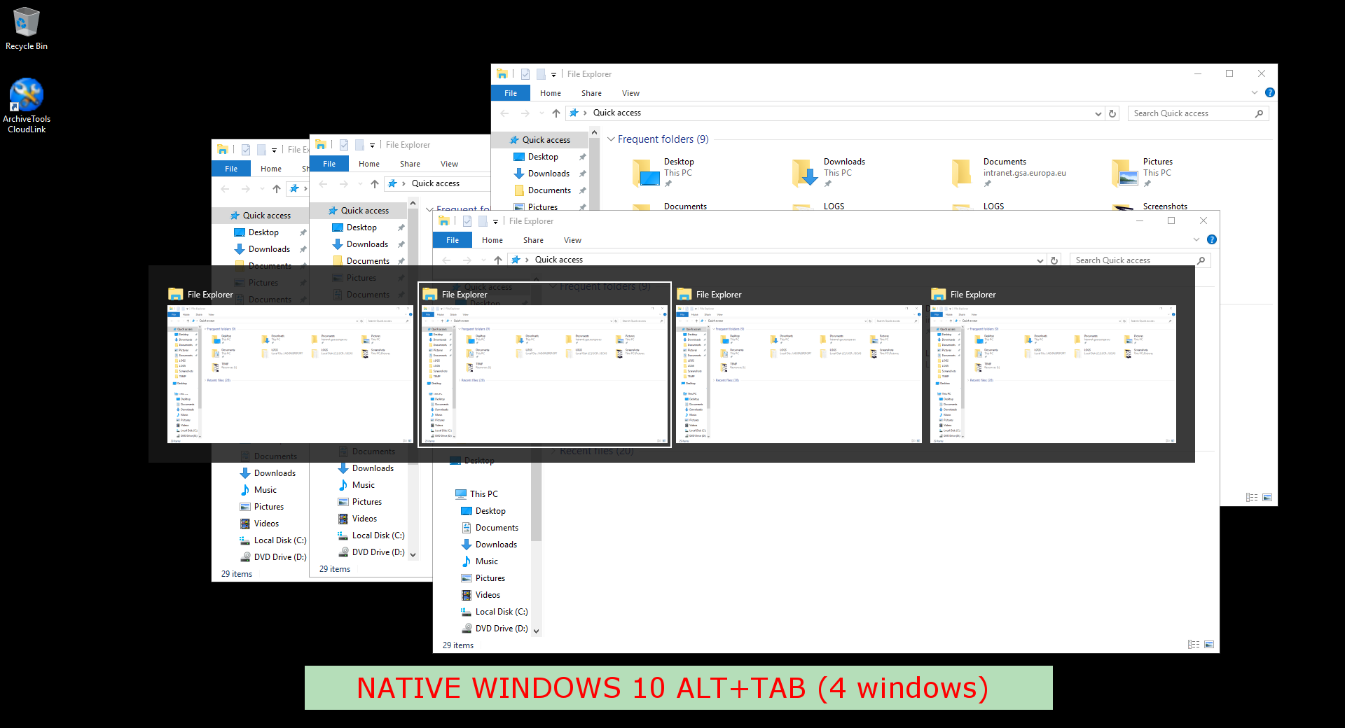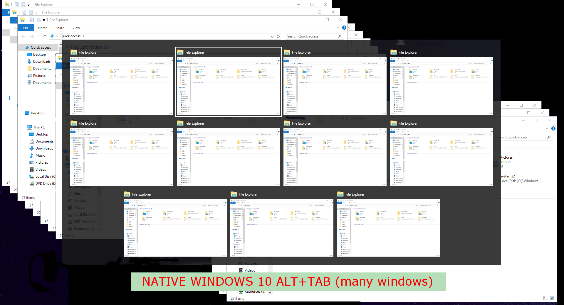 the native Windows 10 ALT+TAB and WIN+TAB differ slightly in a way they decide to ARRANGE and LAYOUT the windows on the screen