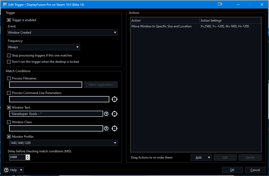 I have 3 monitors configuration and have a trigger to move newly opened window with specific title to top-left corner of 3nd monitor. The DF taskbar on that monitor is set to auto-hide. Quiet often (not always) when DF moves the window there, the taskbar opens up and stays open, covering part of the window, until I click on it (or move cursor over it?).