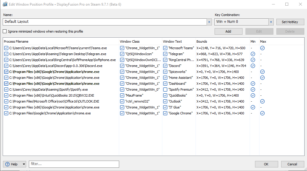<p><font color="red"><b>Note:</b> If your system is not set to lock on sleep or screen saver, the window positions won't be automatically restored when resuming from sleep or screen saver. You can still manually load the positions by assigning a key combination to the "Restore Window Positions from Last Save" function on the Settings > Functions tab.</font></p>