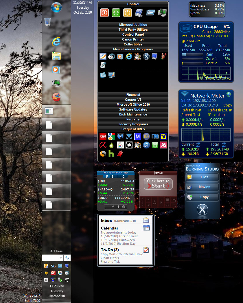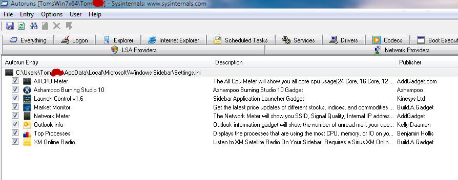 Here's an AutoRun display of the Gadgets that start up on my x64 system.
