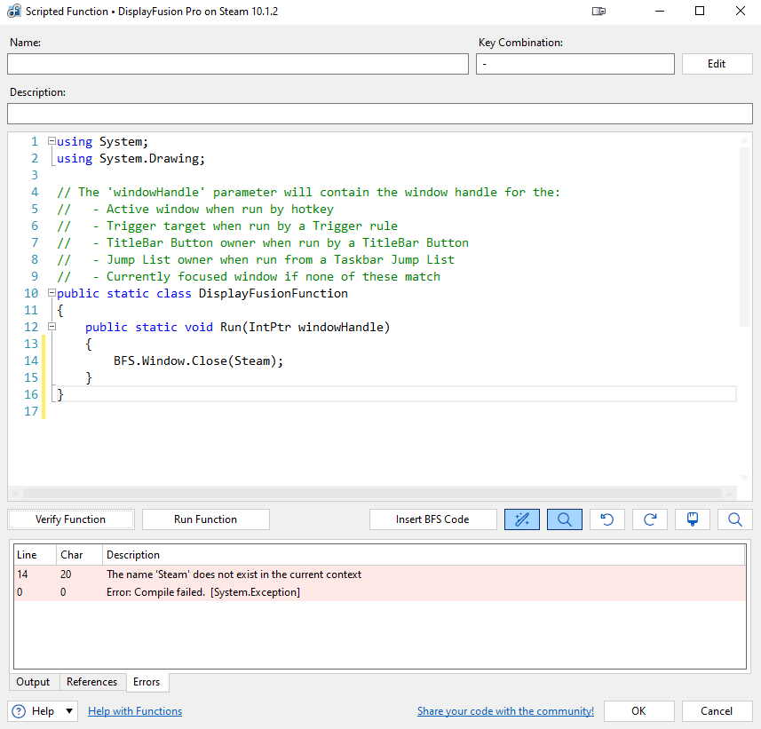 // Get the Steam window IntPtr steamWindow = BFS.Window.GetWindowByText("Steam"); // Close the window BFS.Window.Close(steamWindow);