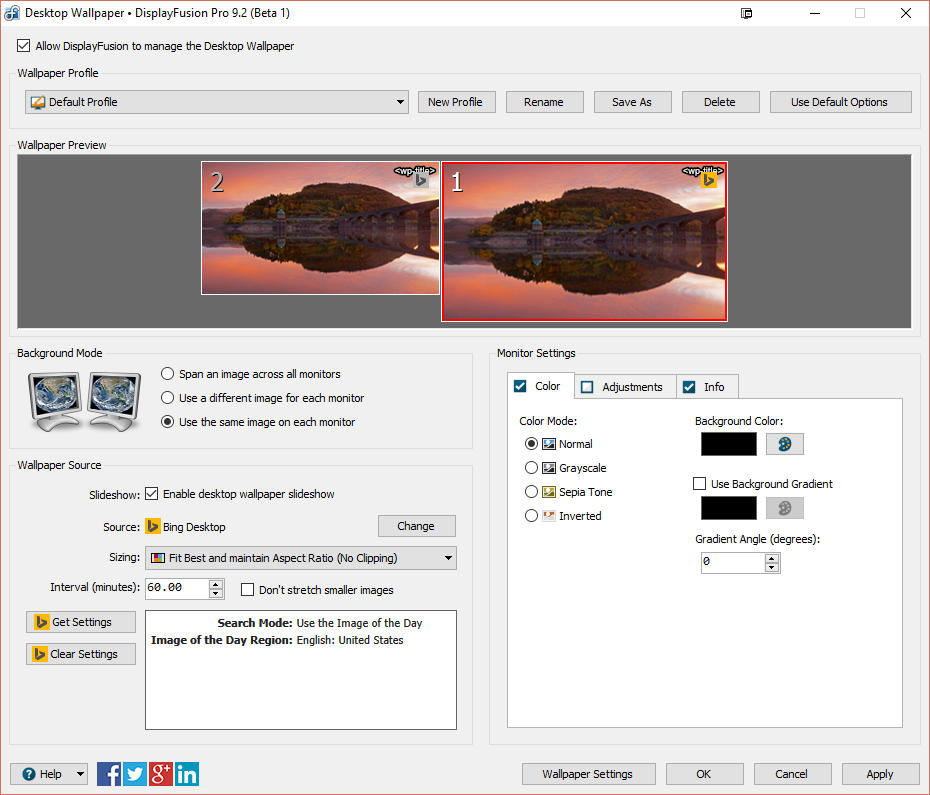 Hi, is it possible to use the sideshow feature with Bing Desktop wallpaper "Use the Image of the day"?