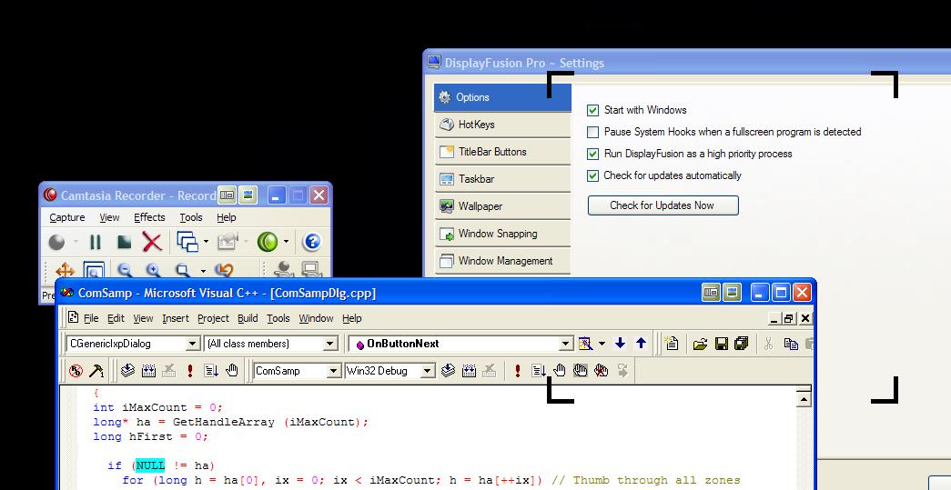 I can't imagine why they aren't being captured, but I also have no idea how Camtasia is capturing the data from the screen. The titlebar button windows are created using something called layered windows (WS_EX_LAYERED) which may have something to do with it. They don't behave like standard windows. I'm going to mark this topic as complete for now, as there isn't much I can do about Camtasia.