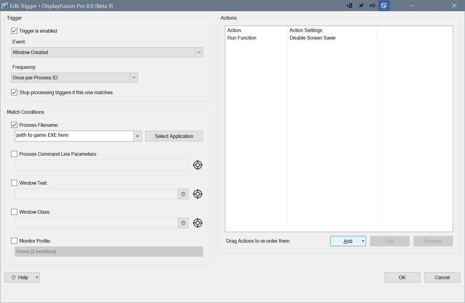 Unfortunately, the Trigger didn't work using GalCiv3 EXE as the trigger. I changed it to the Stream main app, and that worked great. Don't worry, I blame Stream and how they kind of lock games to them on the PC.