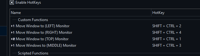 I have created 4 Functions to bind to keys to move a window to monitor #1 - #4.