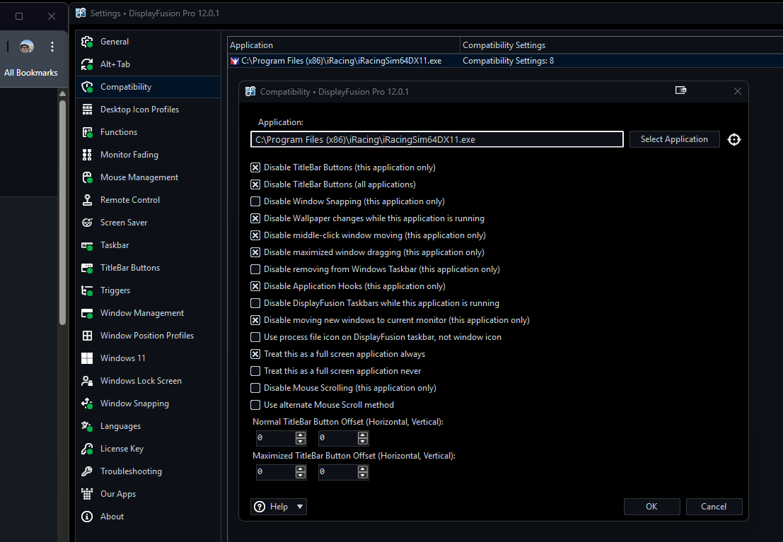 I want to exclude the iRacing Window/App/Process from being impacted by the functions.