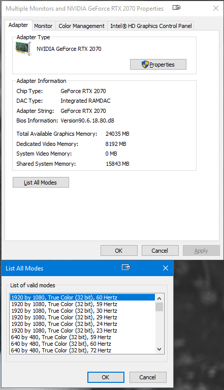 doesn't work, then when you first load up the window that lists all the display modes in the adapter settings, it will show 1920x1080 (or whatever resolution you chose in the normal display properties window). However, in order to make it change the active resolution to this, you will need to choose a differnt resolution from the "List All Modes" window, apply it, then go back into the "List All Modes" window, choose the resolution you want, and apply it. Now, the active signal resolution will change as well. Hopefully that makes sense, seems like a long description to describe a simple problem... lol