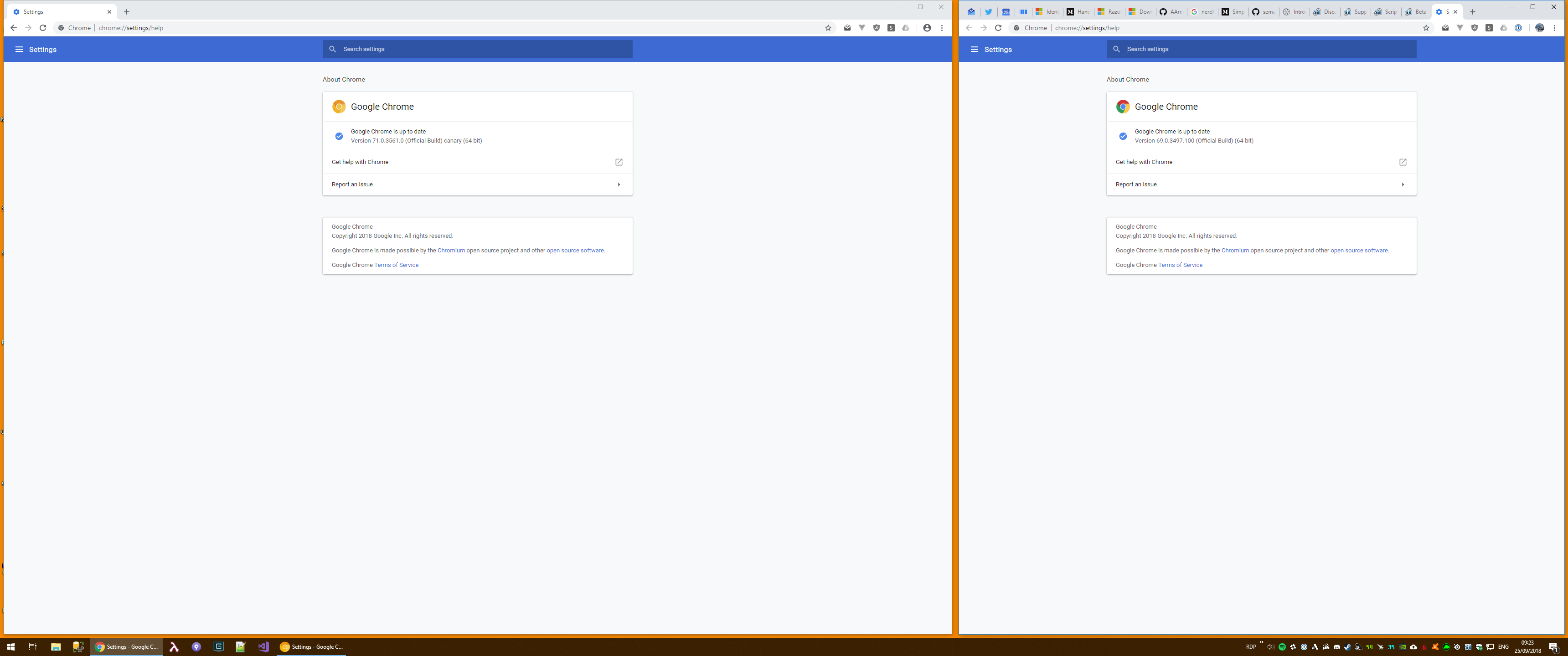 I've just updated to Beta 3 (from Beta 2), on Windows 10 Pro 10.0.17134, and noticed that Chrome application windows are no longer maximizing to the full extent of my monitor splits. Applies to both Chrome stable channel and Canary, as per the screenshots (orange desktop to highlight the gaps). All other applications seem to be unaffected (Windows Explorer, Steam, Spotify etc. are all maximizing as normal) Have tried restarting the apps, and then Windows itself, to no avail. No biggy, just thought I should report it