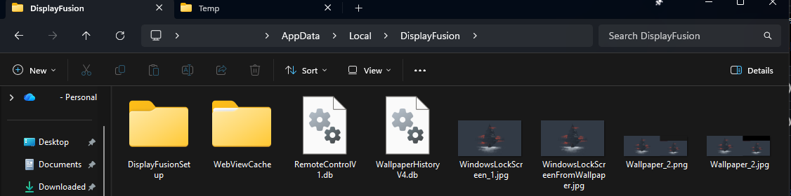Sorry that was an unfortunate typo on my part! You're correct, it would be %localappdata%\DisplayFusion and it's good that you can see the images there. You mentioned the images returning to the documents folder from a bug, which bug are you referring to? Do you know what's causing the images to be put back into the documents folder? Thanks!