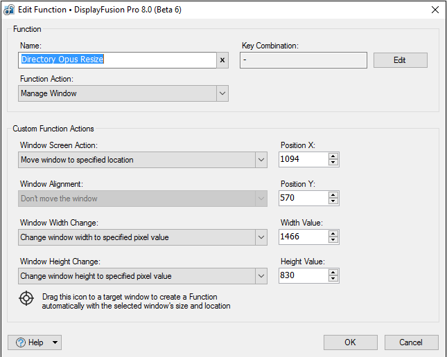 But for some reason when I call the function through a script with: BFS.DisplayFusion.RunFunction() it incorrectly places the window at: