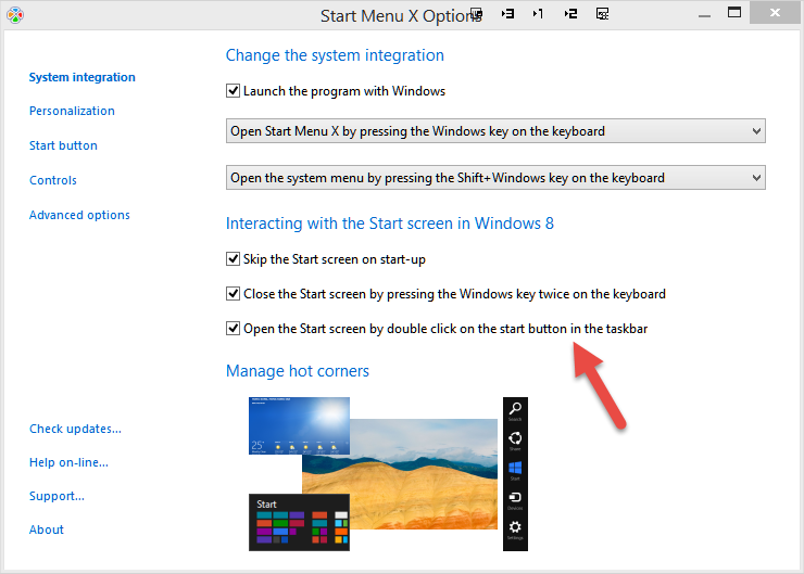 In addition, the Start Menu X option "Open the Start screen by double click on the start button in the taskbar" does not work on monitors 2 and 3. It does work on the primary monitor.