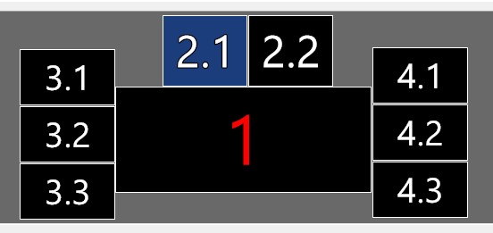 You can change the order via the DisplayFusion Advanced Settings > Monitor order. You can specify monitor splits with a 0 rather then a decimal, so yours would look like this: "1, 401, 402, 403, 301, 201, 202, 302, 303".