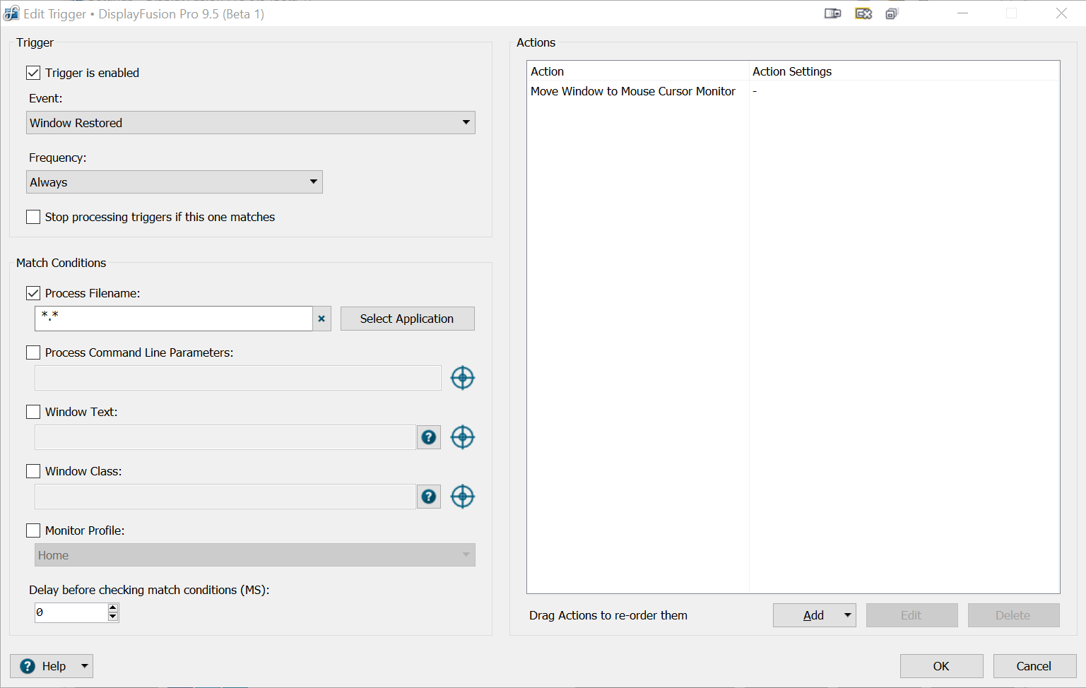 Ok, we do have a feature request on our list for this functionality, so I've added your vote to it. I was hopeful that it would be possible with Triggers, but there are some edge cases like the one you're running into that can happen with the Triggers because they apply to any time the window is restored, not just from the taskbar.