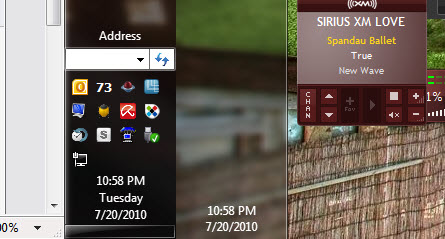 You can disable the clock by right-clicking the taskbar and selecting "Taskbar Clock Disable". To change the text that shows on the clock, just use the Advanced Setting called "Taskbar: Clock Text":