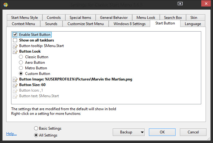 Ouch. I've removed ClassicShell and installed StartIsBack which meets my needs as far as its objective to bring back the Start Menu. However, I removed ClassicShell after beta 8 was released. And the Marvin the Martian start orb did not change in size on the DF taskbar. It was the same size as the pic initially posted on this thread.