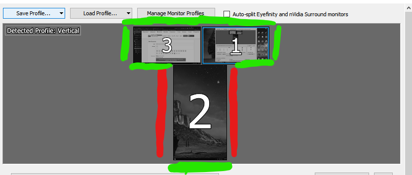 In my screenshot, I have marked the edges in green that I would like to keep and the edges in red that I would like to disable. I find it quite often that I briefly go off the bottom right edge of monitor 1, try and go back up, and end up on monitor 3.