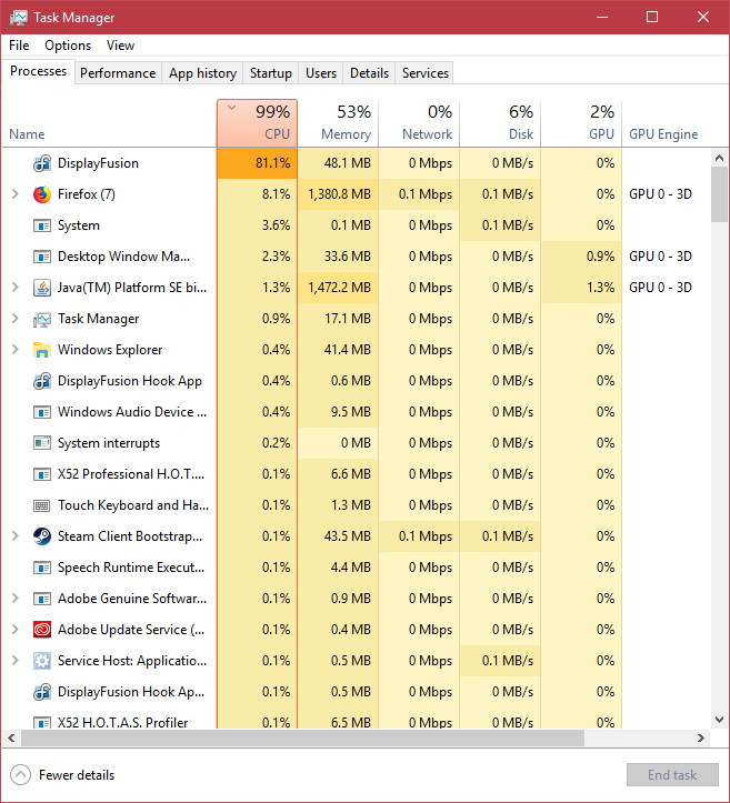 I dont know why the display fusion use that much cpu
