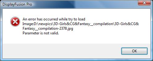 I think you have a bug, when the image filename has a "-" in it, displayfusion now thinks its a command line option and errors.