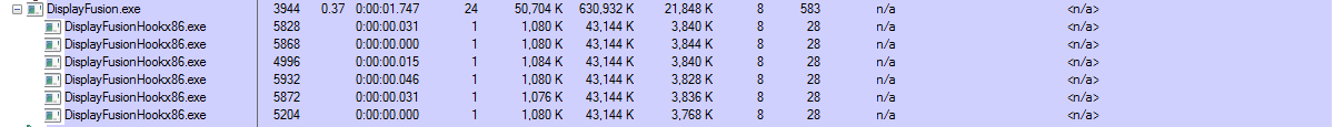 I am using beta 6 and right now there are two instances of DisplayFusionHookx86.exe running.