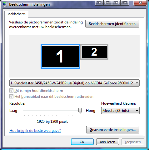 Both are HP LP2475W monitors and set to the exact same resolution : 1920 x 1200 ..... weird or what! Both DPI settings are exactly the same too!