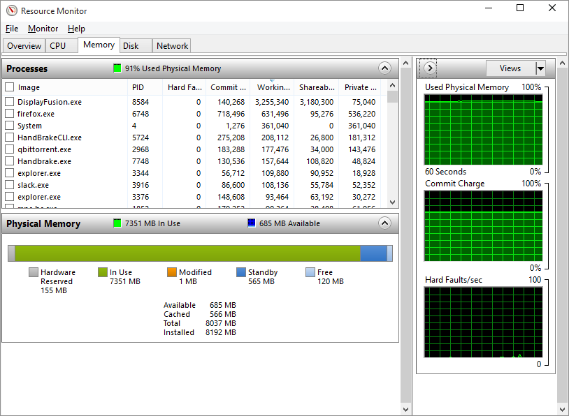 I had been wondering why it seemed like I've had a lot less free memory since upgrading to Windows 10, initially just blaming the OS itself, but when I finally decided to check the Resource Monitor instead of relying on the Task Manager, it turned out to be DisplayFusion gobbling it all up. I think this may be cause by the Alt+Tab handler, because when I alt+tab is seems to go back to a more sane level of memory usage.