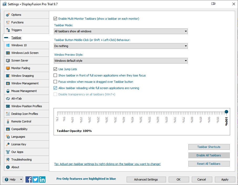 The DF taskbar stays visible when I'm watch full screen videos in my Chrome browser. I'd like it to disappear when I'm in full screen. Does anyone know what settings I should be using? I'm running Pro Trial 9.7 in Windows 10.