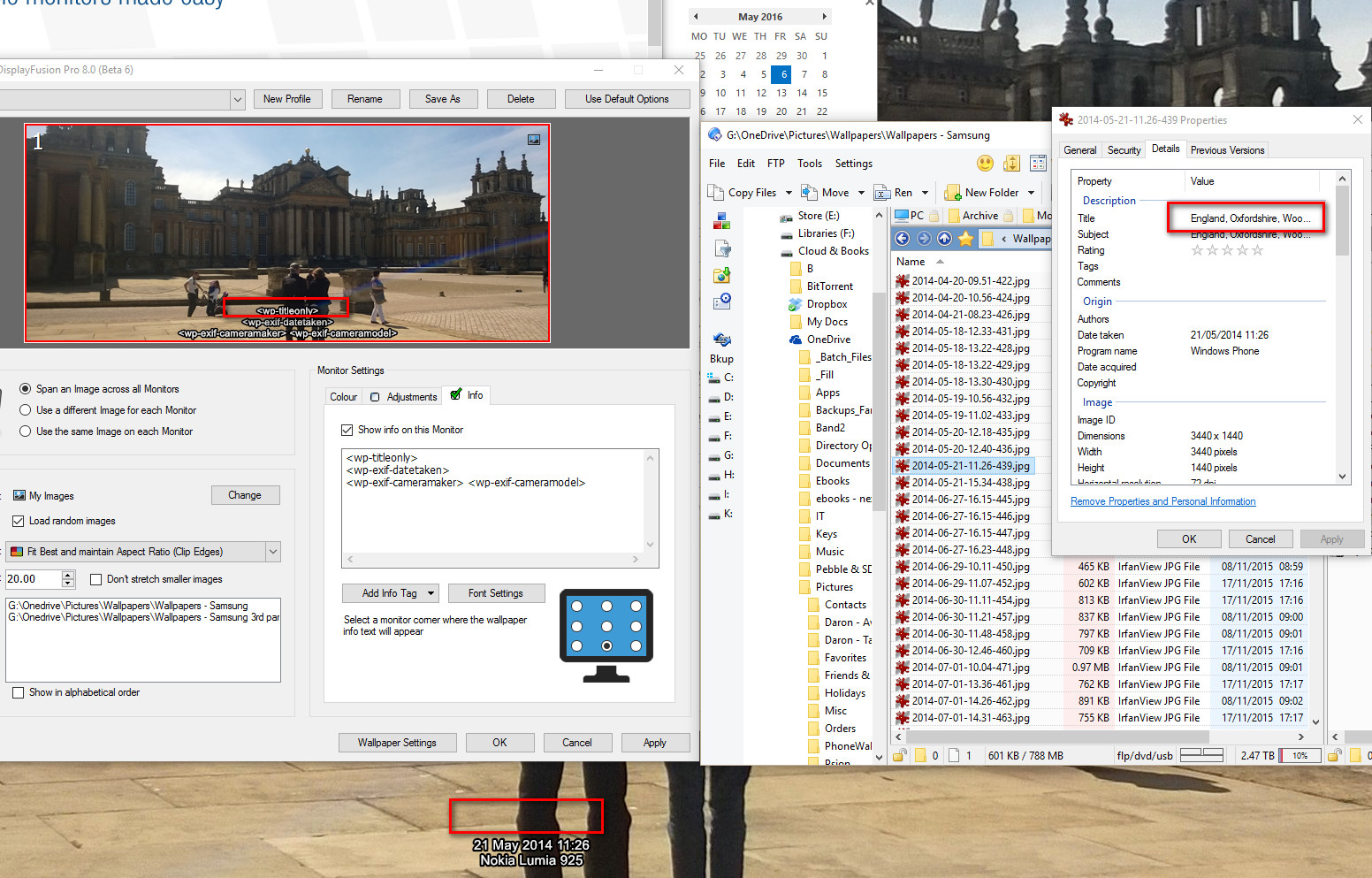Reason being my wallpapers are comprised of two folders, which are my own photos which have EXIF data and titles in the files, and a second folder containing collected wallpapers from the web.