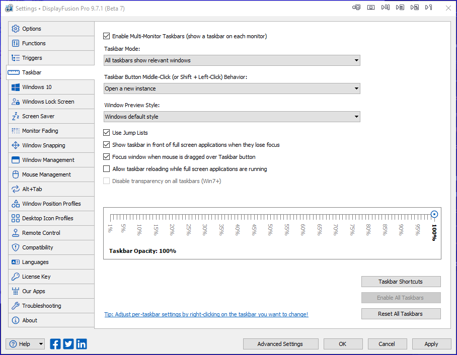 Strange! I can't seem to reproduce the issue on my end. What do you have your taskbar mode set to in Display Fusion?