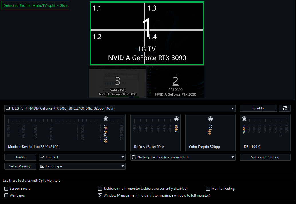 Since I'll use splits for the TV, quarter of the screen will be as big as my other monitors.