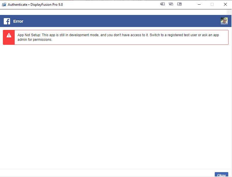 I'm very sorry about this, Facebook unfortunately decided to revoke DisplayFusion's access without any warning. We've been trying to get it reinstated but dealing with Facebook is very challenging. We'll follow-up here once we have a better answer.