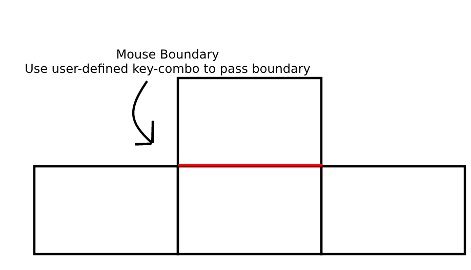 Could there perhaps be a optional feature that allows me to pick a shared border(s) between monitors to have the mouse blocked unless a key is pressed?And/or amount of mouse travel required to pass said boundary (Keep moving mouse towards boundary until allowed past; strength of this effect could be controlled via slider or numeric value)