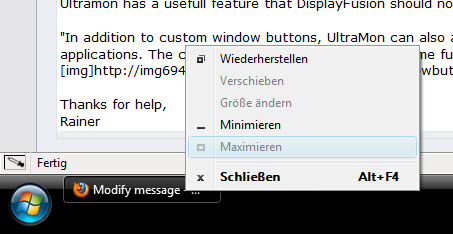 "In addition to custom window buttons, UltraMon can also add custom menu commands to the window (or system) menu of applications. The custom menu commands add the same functionality as the window buttons."