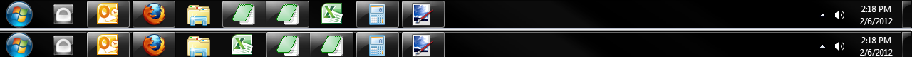 My windows taskbar has the option "Taskbar buttons" set to "Combine when taskbar is full", but I also have a custom registry setting so that only icons are shown in each taskbar button. You can see in the screenshot how this looks like, and how notepad buttons are moved together on the taskbar.