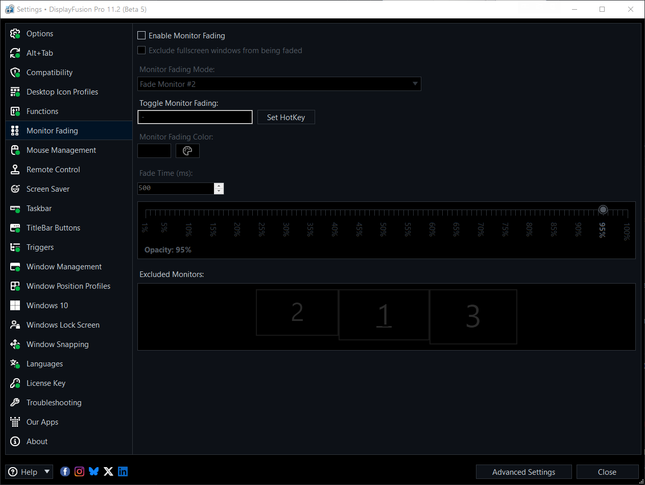 It would be extremely helpful if DisplayFusion offered an option to simply dim or black out the monitors instead of completely powering them off.