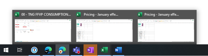 C.) Group the applications within Windows Task View (which already have prominent application thumbnail previews) by application type. e.g. Keep all the Excel thumbnail previews together, and so on and so forth with the other open applications. Then organize the grouping of application previews by most recently used.