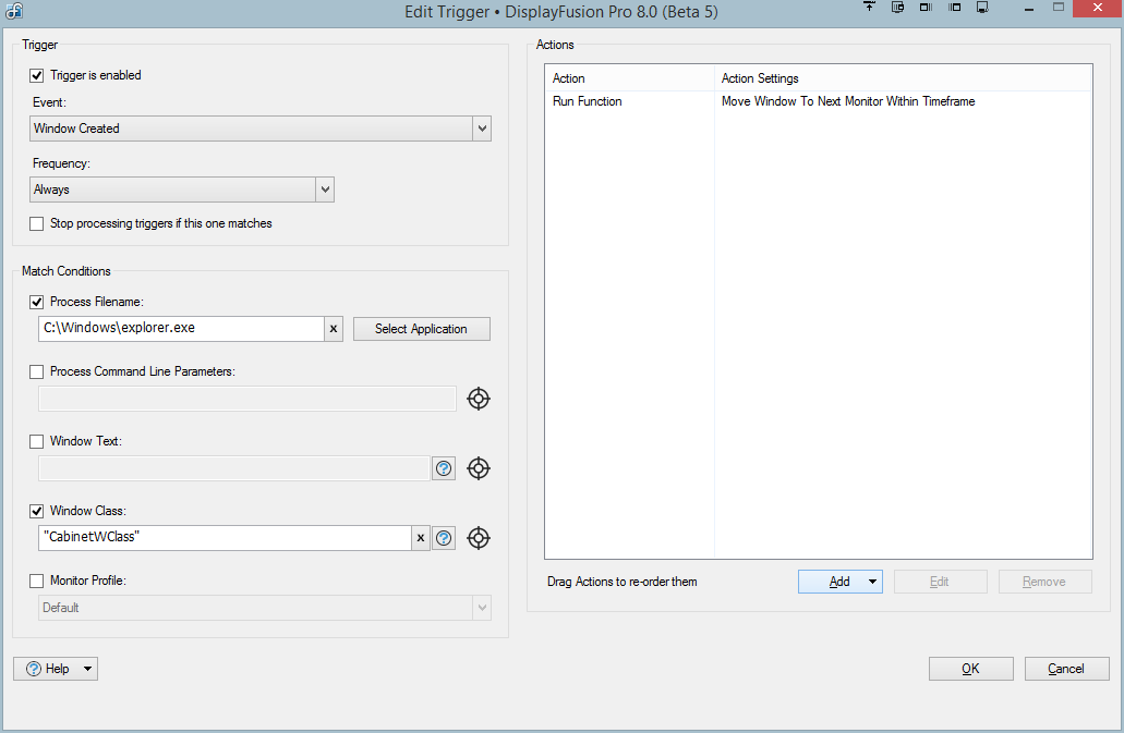 I have also attached a picture of what your trigger window should look like when everything is set up correctly.