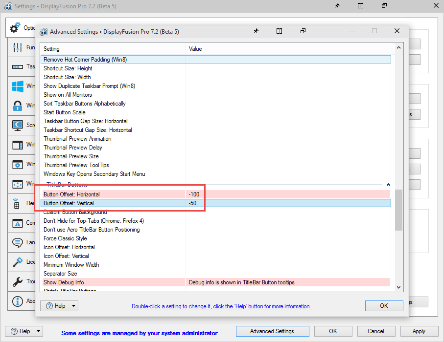 Hi because of other applications I use to modify the display the Icon that is displayed in the name bar for each window just to the left of the minimize gadget isn't always as it should be for this reason it would be useful to be able to change the location and size of the icon which is added to each windows bar to the left of the minimize gadget.