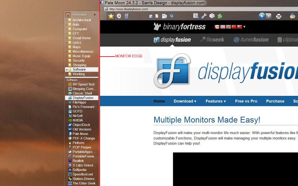 It's nice to have the transparent bookmarks panel open all the time and on a different monitor as well.
