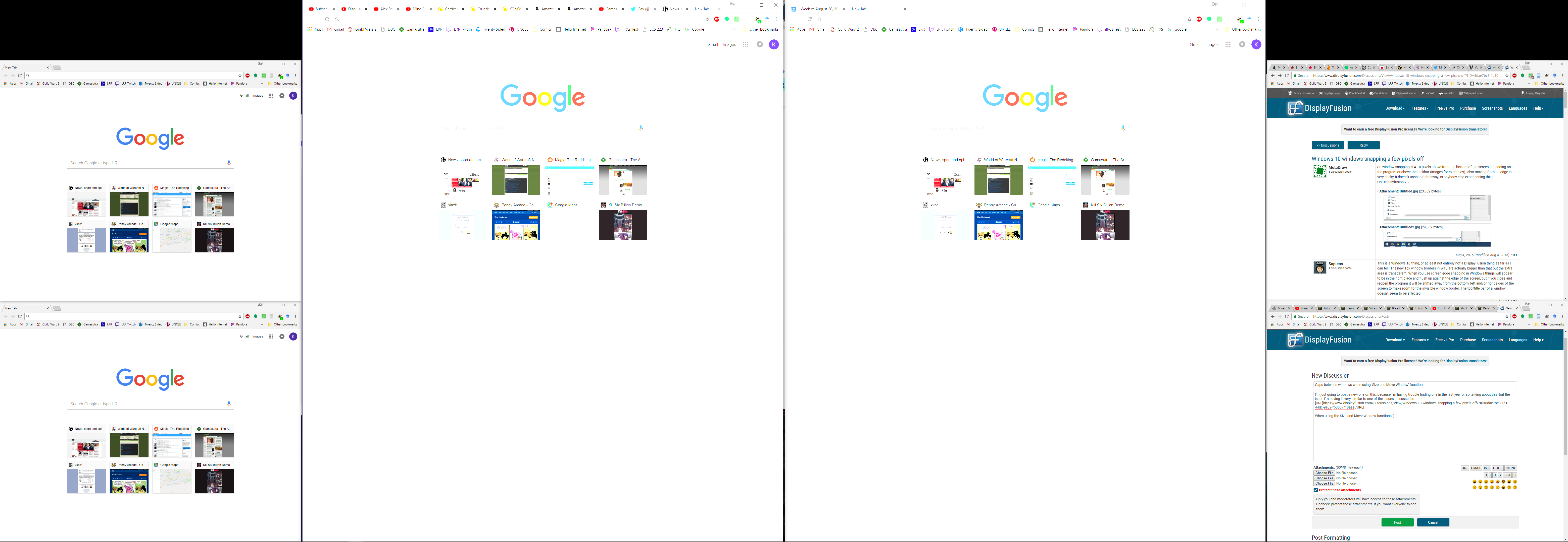 The Windows snap shortcuts aren't leaving gaps with any of the windows.