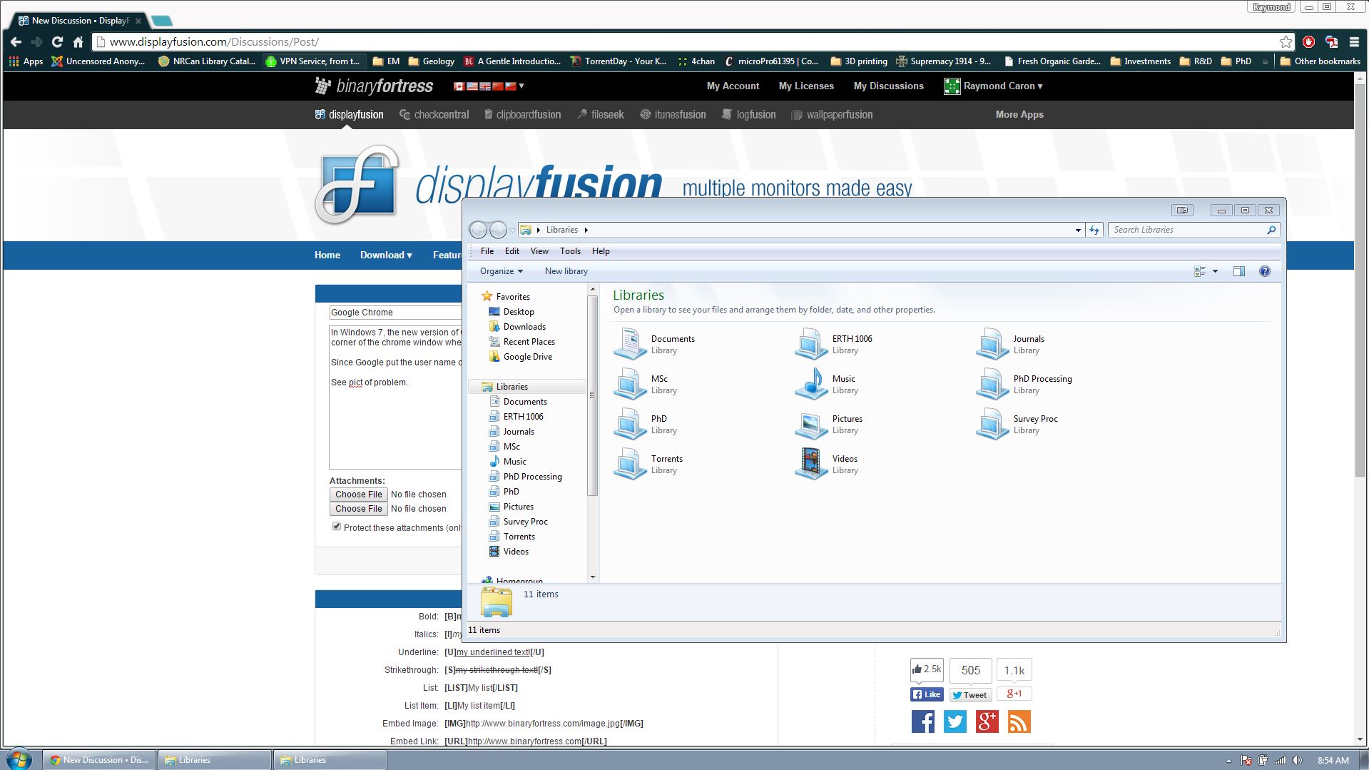 In Windows 7, the new version of Google Chrome has the login name of the user, logged into Goolge's services, in the upper right-corner of the chrome window where the Display Fusion 'move window to other monitor' button typically appears.