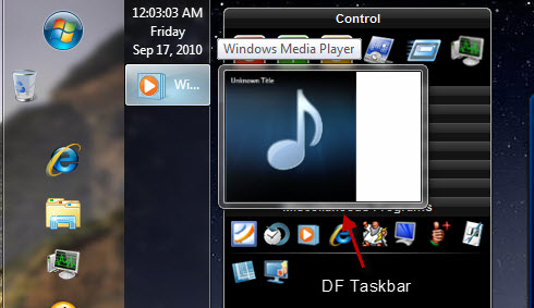 Here are pics of WMP in the Main Taskbar and in DF Taskbar