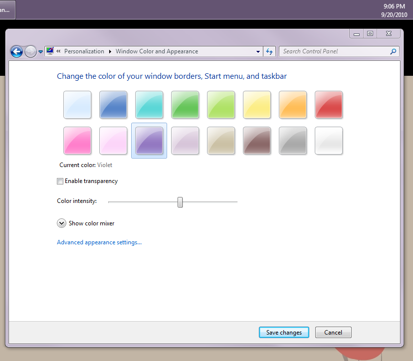 Here is my setting pic. Note that I let my desktop color for each monitor be controlled by my nVidia control panel for my nVidia 8800 GTX card.
