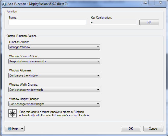 You can automate this. Use the Add Function button to bring up a dialog that allows fine-grained editing. If you have a window placed exactly how you want it, drag the target at the bottom of the dialog onto the desired window to retrieve its position information.