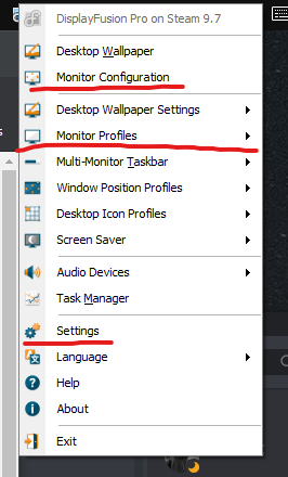 how do i go about removing everything apart from monitor configurations, monitor profiles and settings from the right click menu in task bar