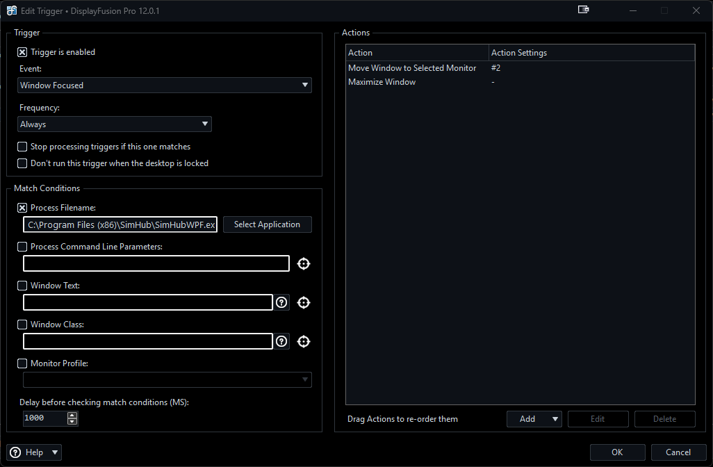 NOTE: Some programs need to open on my larger monitor so I cannot have a catch-all rule such as "all processes *.*" as some apps have to open on specific monitors.